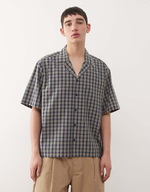 COLLUSION short sleeve boxy shirt in blue & grey check