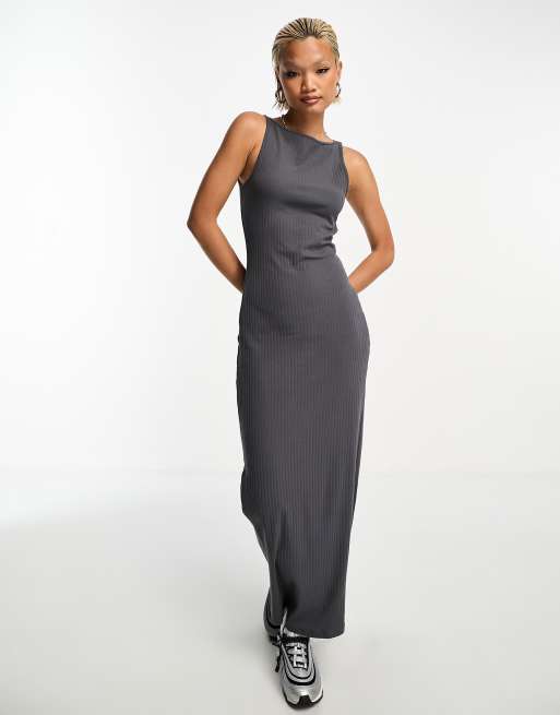 COLLUSION slash neck maxi dress in grey