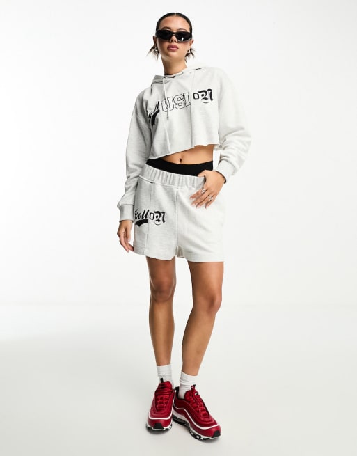 COLLUSION spliced varsity cropped hoodie & shorts set in grey