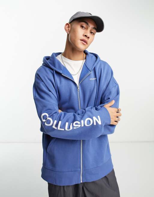 COLLUSION super oversized zip-through hoodie in navy