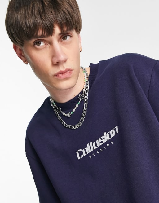 COLLUSION sweatshirt & trackies set with embroidered logo in dark blue