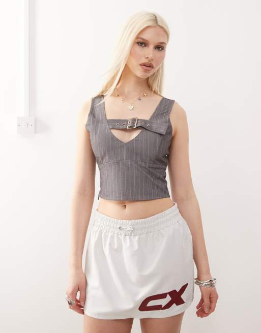 COLLUSION tailored buckle cami top in grey pinstripe