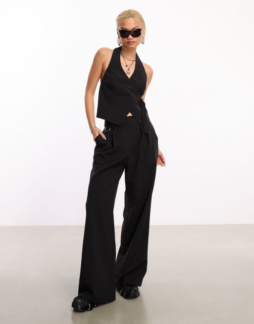 COLLUSION tailored fitted waistcoat and pants set in black