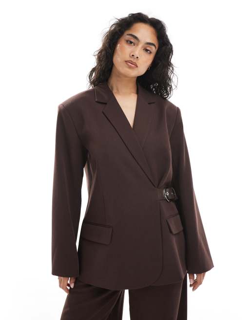 COLLUSION tailored oversized belt detail blazer in chocolate (part of a set)