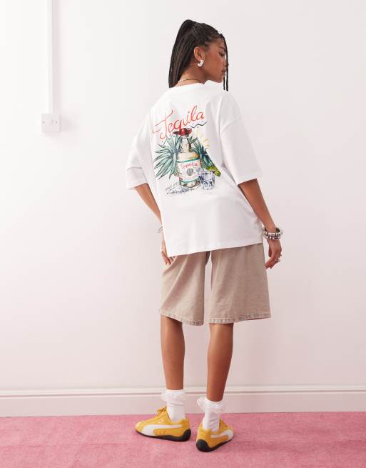 COLLUSION tequila print graphic t shirt in white
