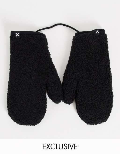 COLLUSION Unisex borg mittens in black
