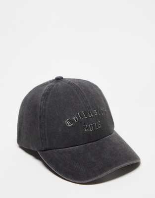COLLUSION Unisex collegiate tonal branded cap in washed black