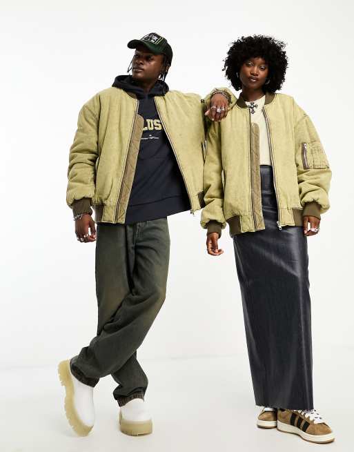 COLLUSION Unisex distressed washed oversized bomber jacket in neutral stone