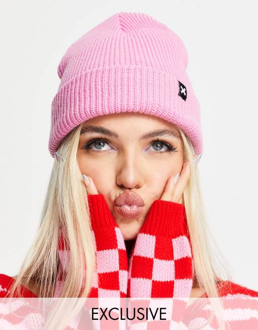 COLLUSION Unisex logo beanie in pink