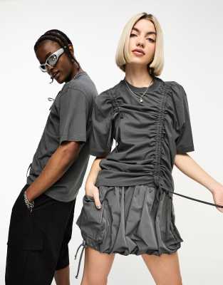 COLLUSION Unisex ruched crop t-shirt in dark grey