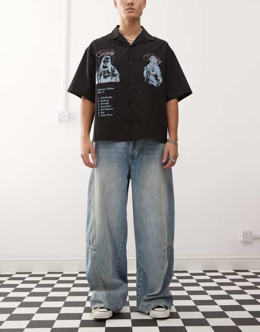 COLLUSION X002 baggy jeans with seamed details in lightwash blue
