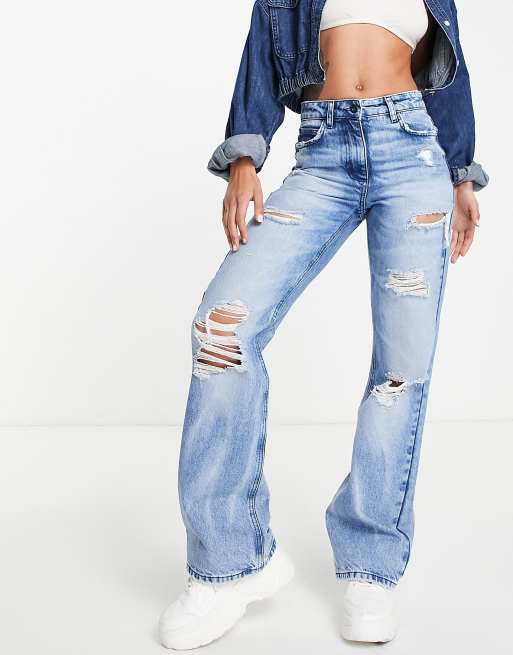 COLLUSION x005 straight leg ripped jeans in washed blue