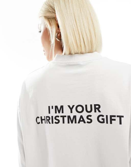 COLLUSION Your Christmas Gift slogan print t-shirt in white