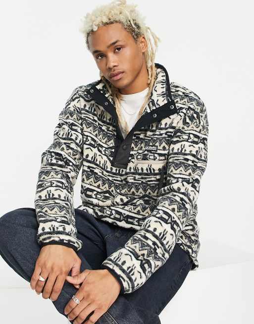 Columbia Helvetia half snap fleece in stone 80s stripe print