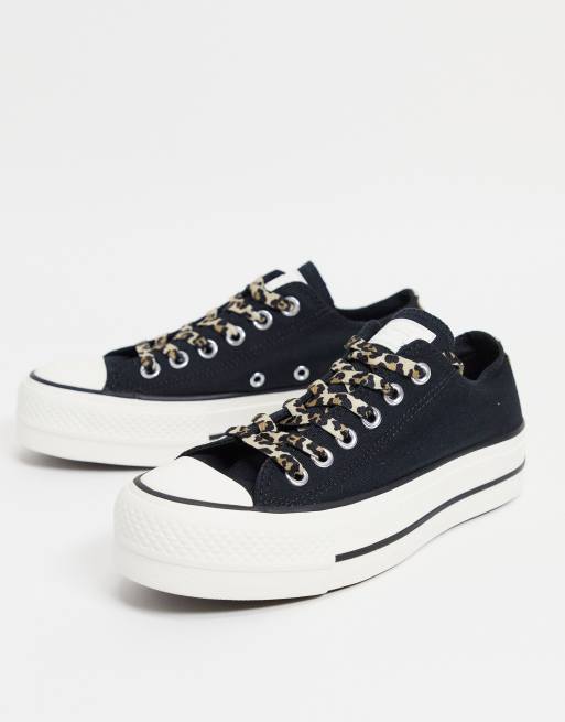 Converse Chuck Taylor Lift Ox sneakers with leopard laces in black