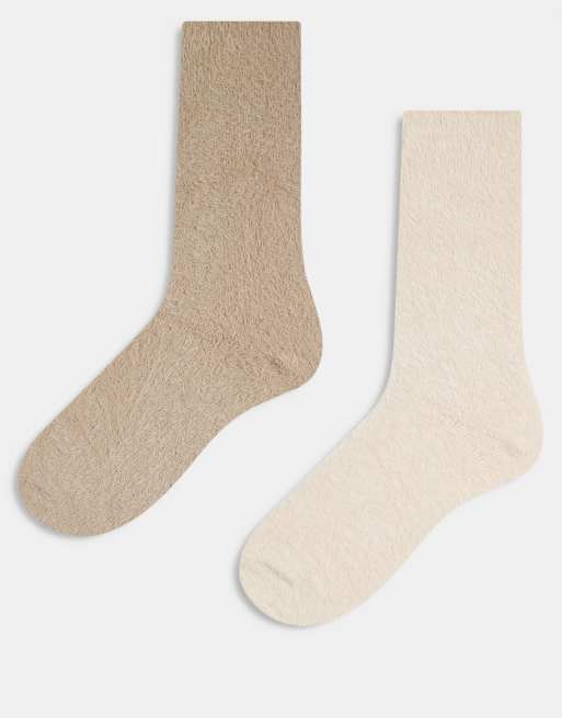 Cotton On 2 pack fluffy crew socks in neutral