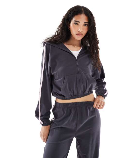 Cotton On Departure Lounge crop zip-through hoodie in deep blue aura
