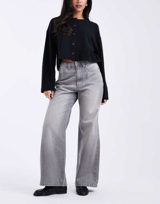 Cotton On low rise super baggy jeans in grey studded wash