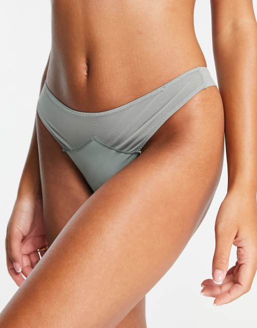 Cotton On mesh high cut lingerie thong in khaki