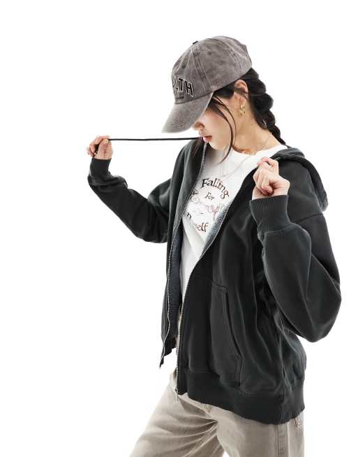 Cotton On oversized zip through hoodie in washed black