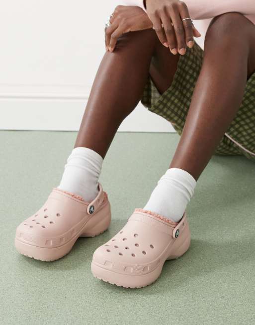 Crocs classic platform lined clogs in pink clay