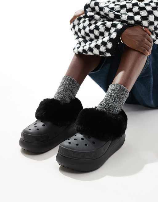 Crocs Furever Crush faux fur lined clogs in black