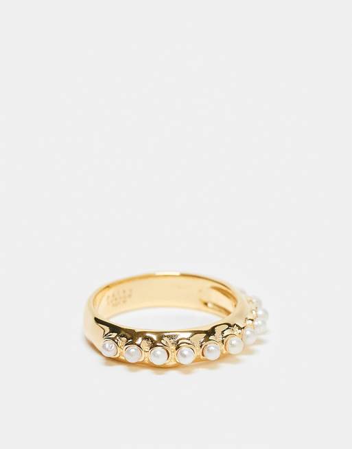 Daisy London pearl detail ring in 18kt gold plated sterling silver