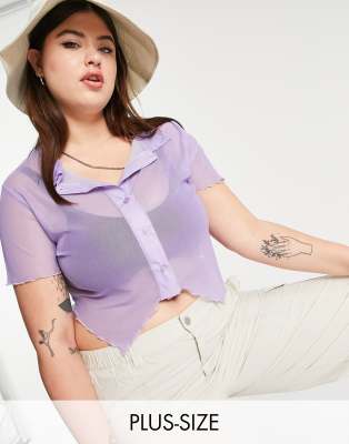 Daisy Street Plus 90s style button-front fitted crop top in lilac mesh