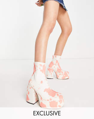 Daisy Street Exclusive platform heeled boots in pink cow print