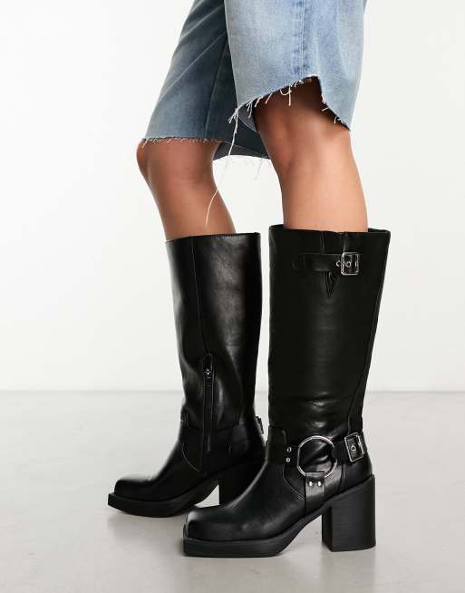 Daisy Street harness knee boots in black