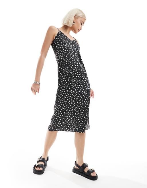 Daisy Street satin cami midi dress with side split in black ditsy