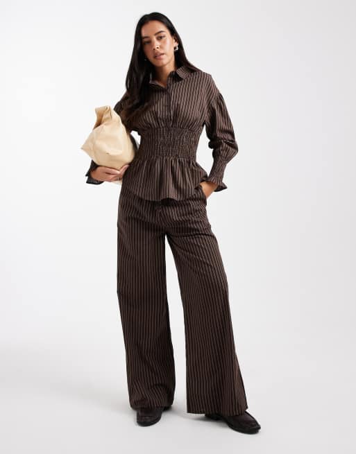 Daisy Street shirred set in brown stripe
