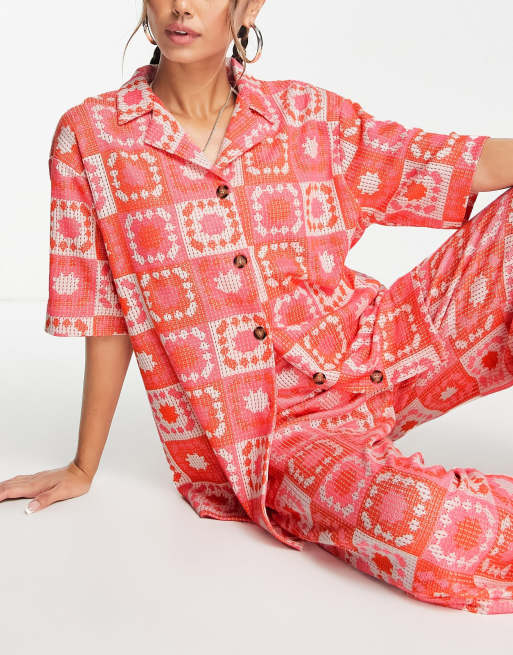 Damson Madder Bessie wave crochet short sleeve shirt in pink and orange (part of a set)