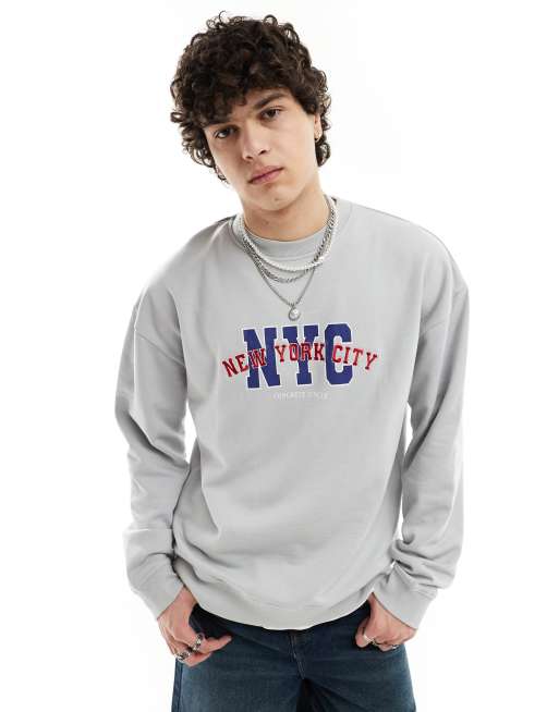 Denim Project crew sweatshirt in light grey with NYC embroidery