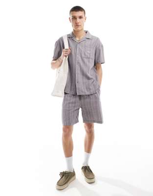 Denim Project linen look striped shorts in light purple (part of a set)