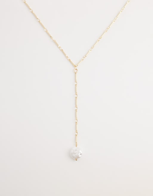 DesignB London pearl lariat necklace in gold