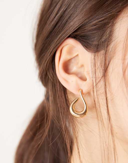 DesignB London twisted hoop stud earrings in gold tone