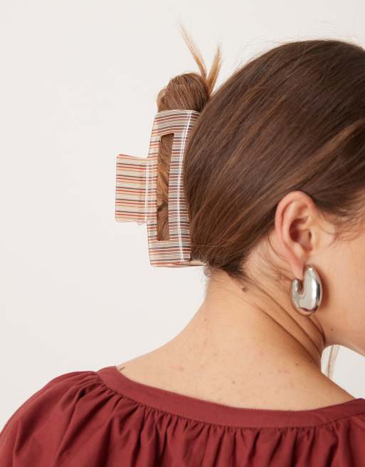 DesignB London XL rectangular hair claw clip in brown stripe