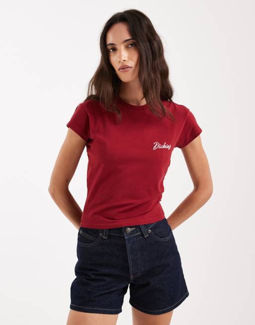 Dickies capped sleeve baby tee in burgundy