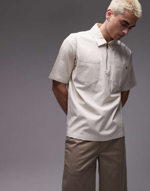 Dickies Western Ranch quarter zip shirt in off white