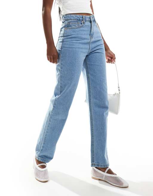 DTT Katy high waisted cropped straight jeans in light blue wash