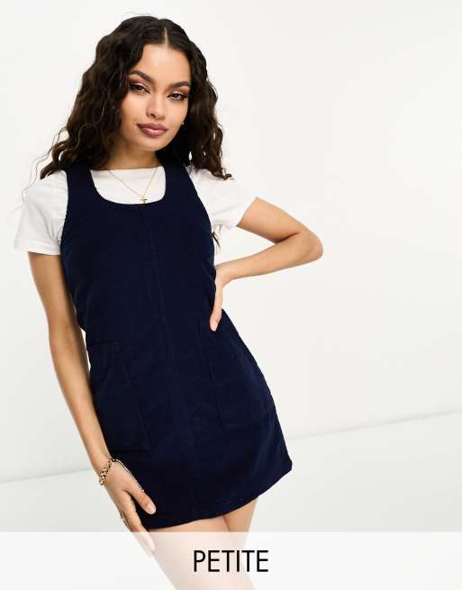 DTT Petite Dawn cord pinafore dress with zip back in navy
