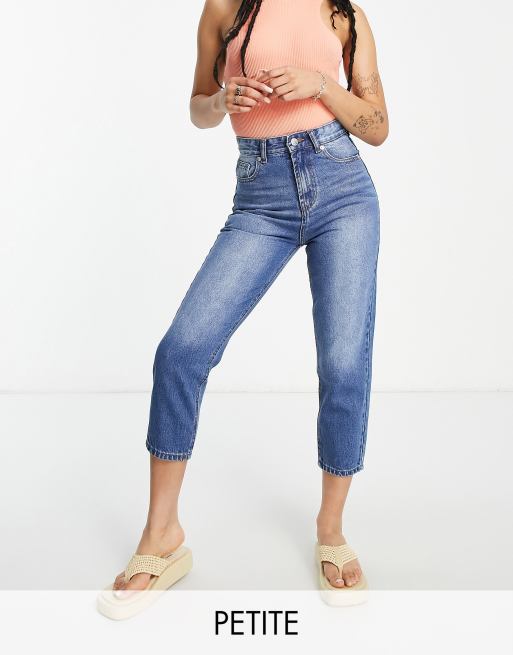 DTT Petite Emma super high waisted mom jeans in mid wash blue