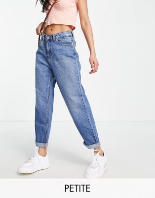 DTT Petite Veron relaxed fit mom jeans in mid blue wash