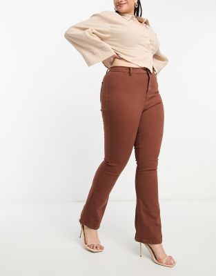 DTT Plus Bianca high waisted wide leg disco jeans in chocolate