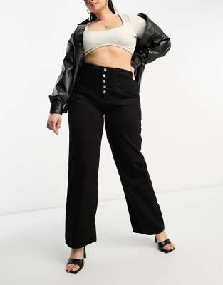 DTT Plus Fern straight leg jeans with button front in black