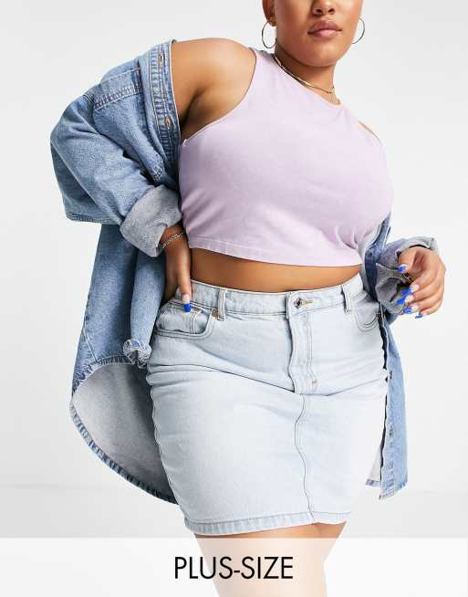 DTT Plus Gabby high waisted denim skirt in light blue