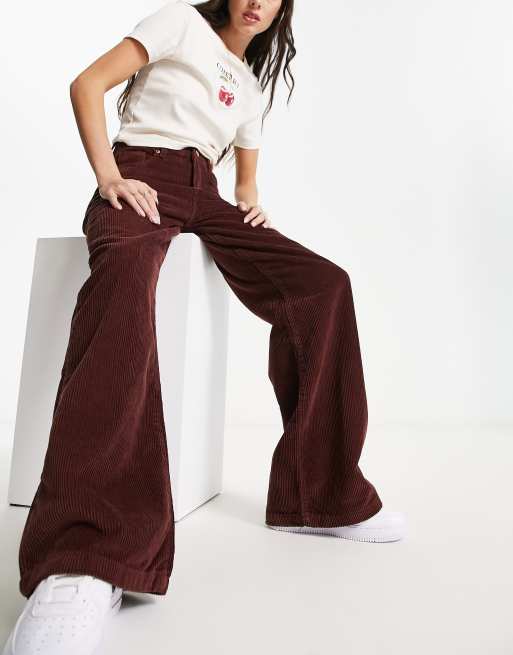 DTT Silvia cord flared pants in chocolate brown