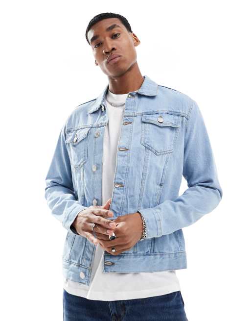 DTT slim fit denim jacket in light stone wash