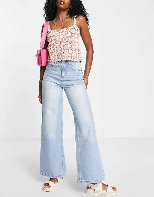 DTT wide leg jeans in light wash blue